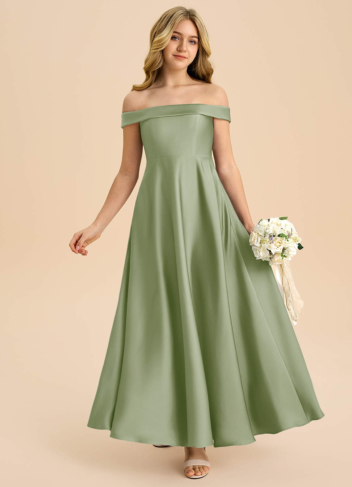 Robe Trapèze en Satin extensible Épaule décolletée Vert Sauge