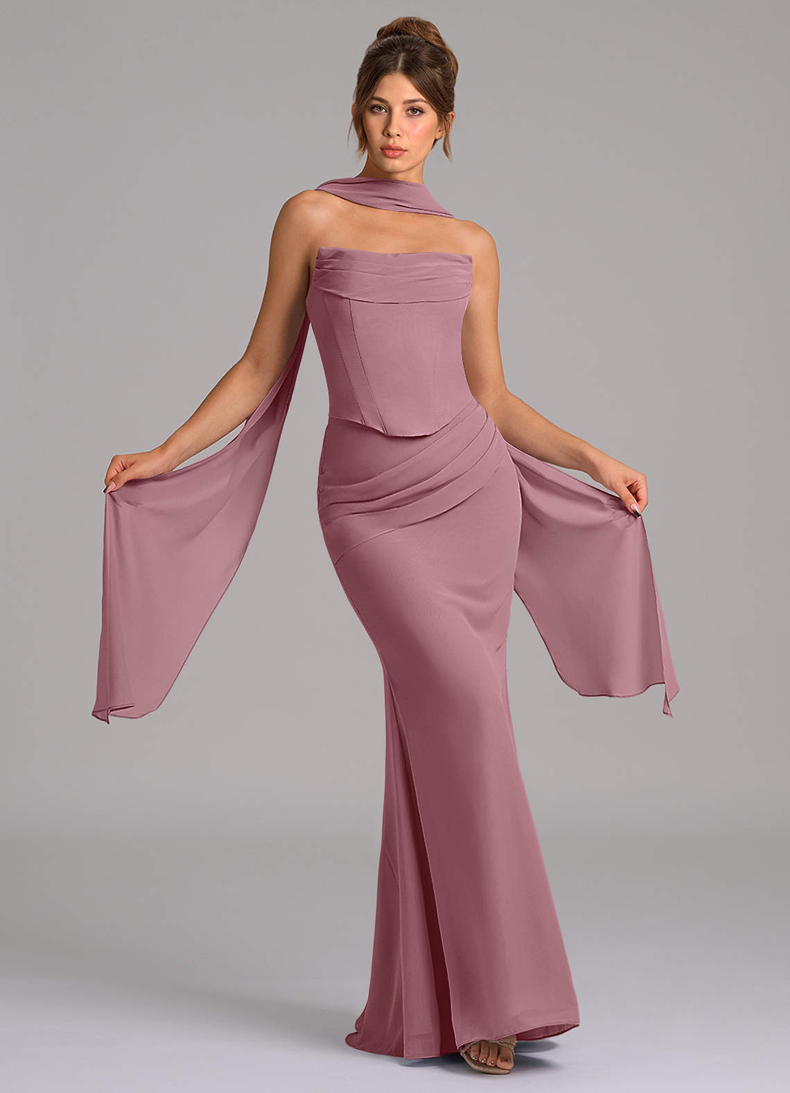 Robe Sirène en Mousseline de soie Corset Mauve Vintage