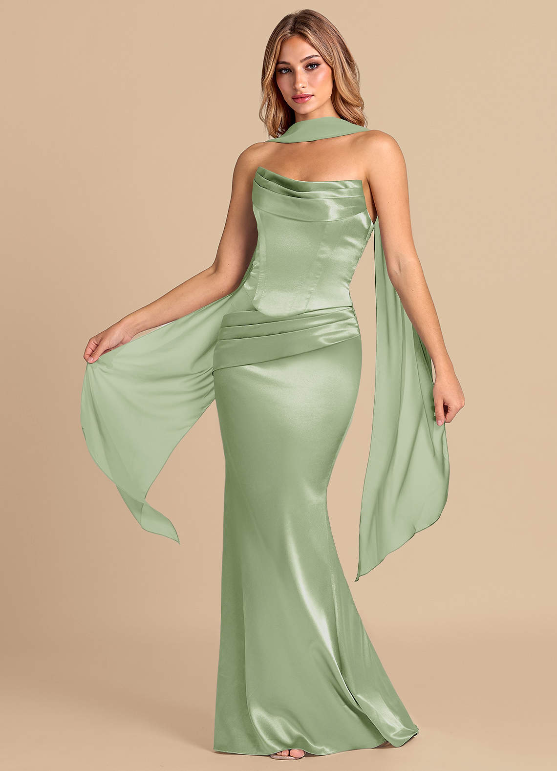 Robe Sirène Convertible en Satiné métallisé Corset Vert Sauge