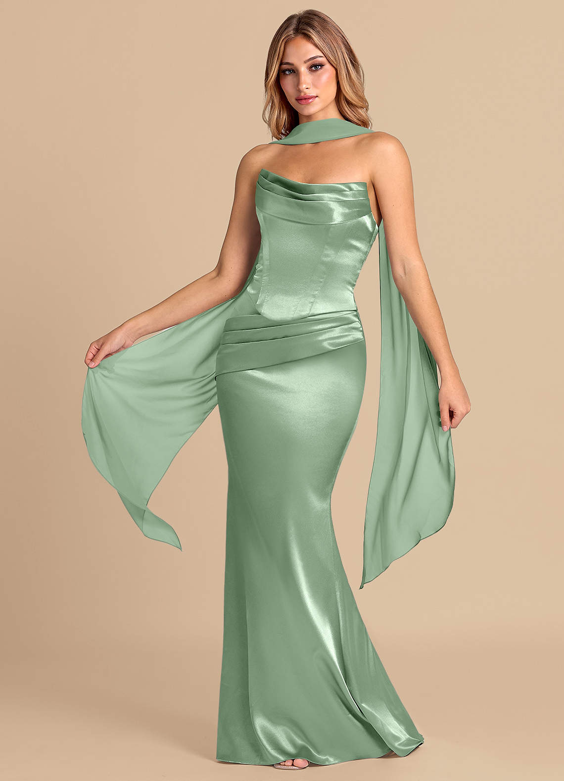 Robe Sirène Convertible en Satiné métallisé Corset Matcha
