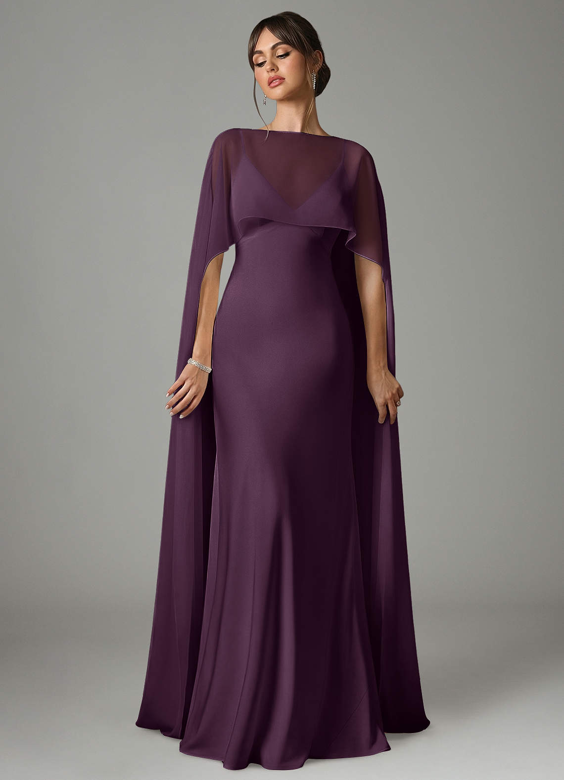 Robe Trapèze en Satin extensible Prune