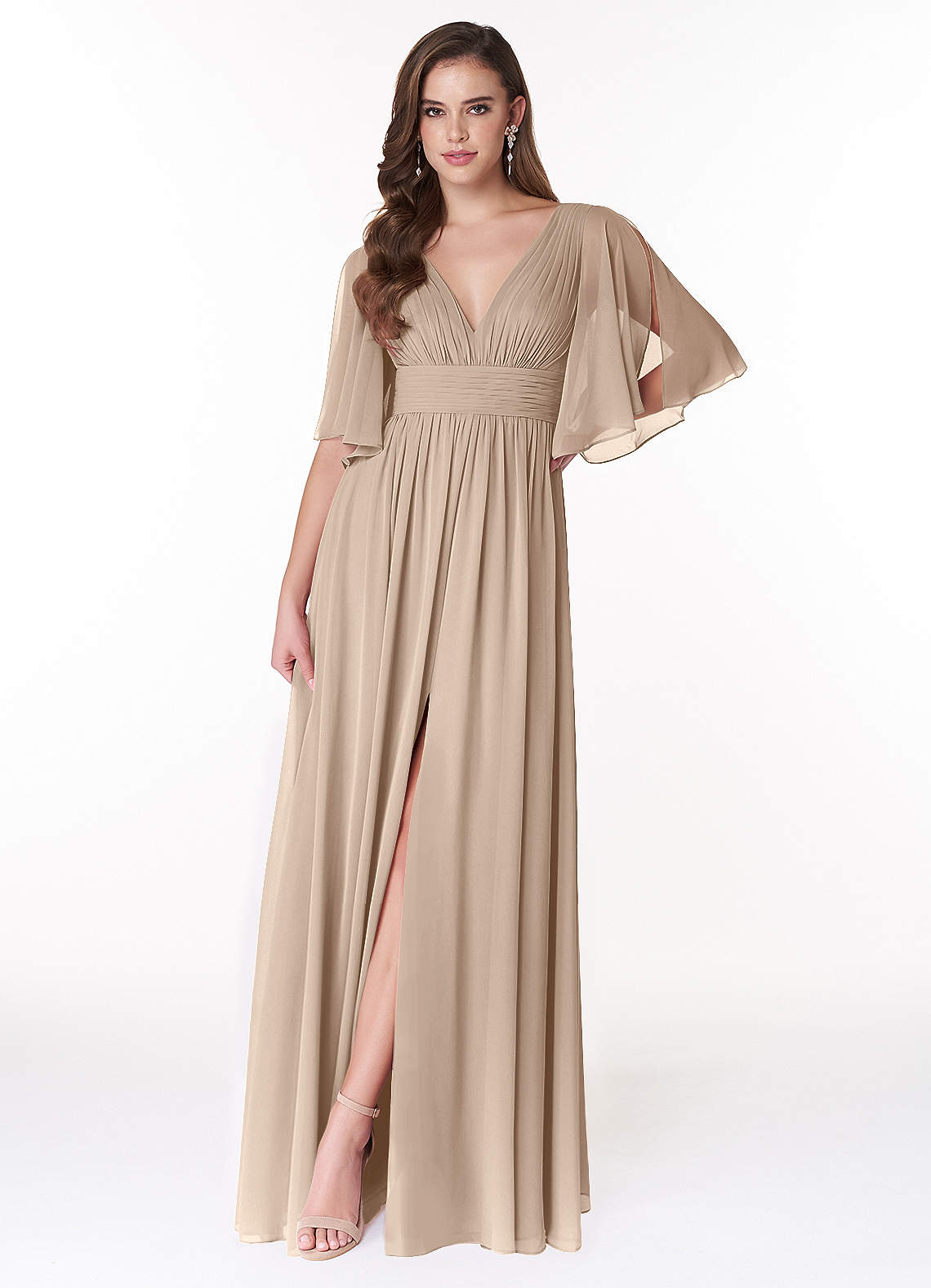 Robe Trapèze en Mousseline de soie Rayé Taupe