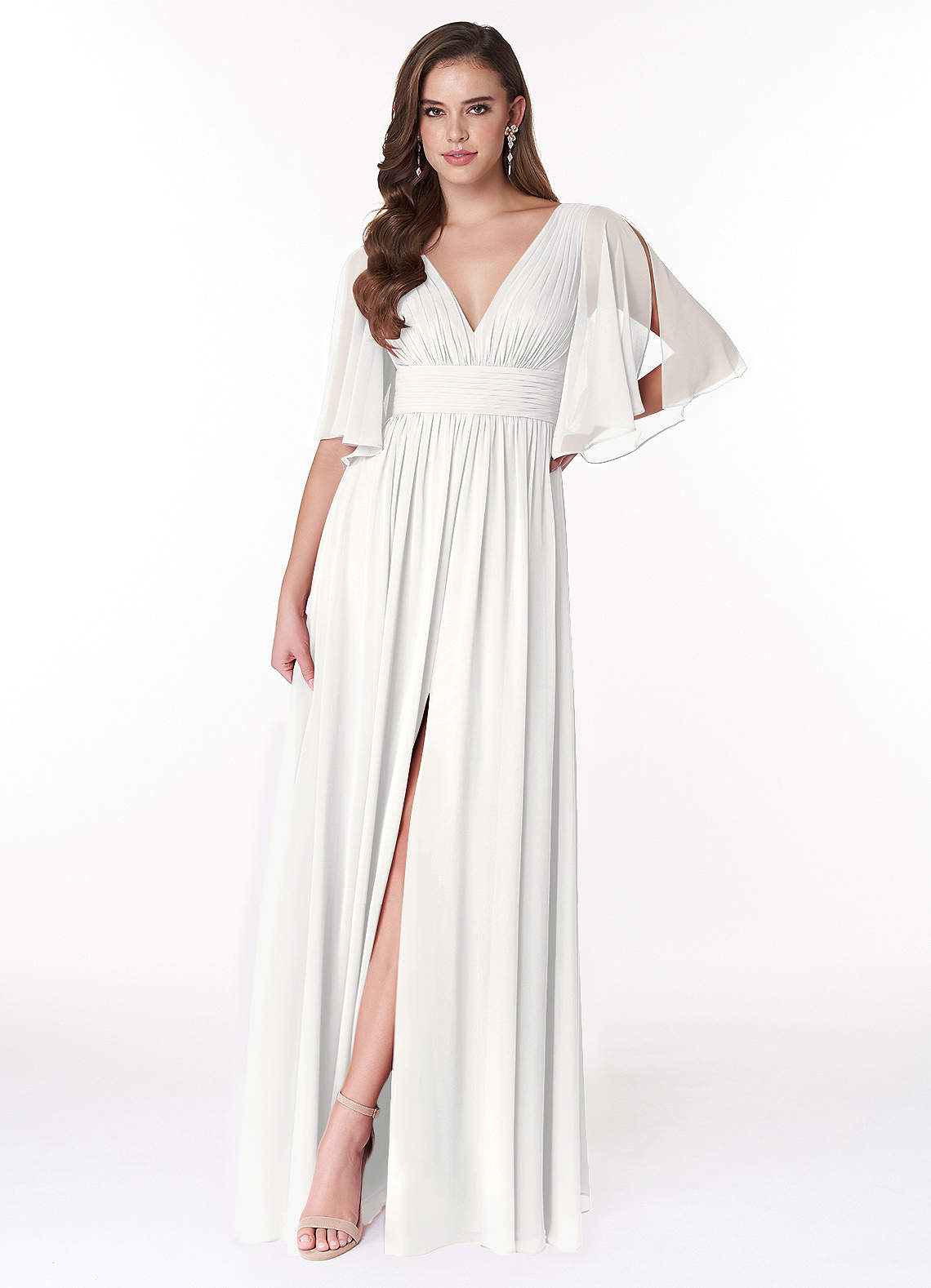 Azazie Temeka Robes de demoiselle d'honneur Robe Trapèze en Mousseline de soie Rayé Blanc image1
