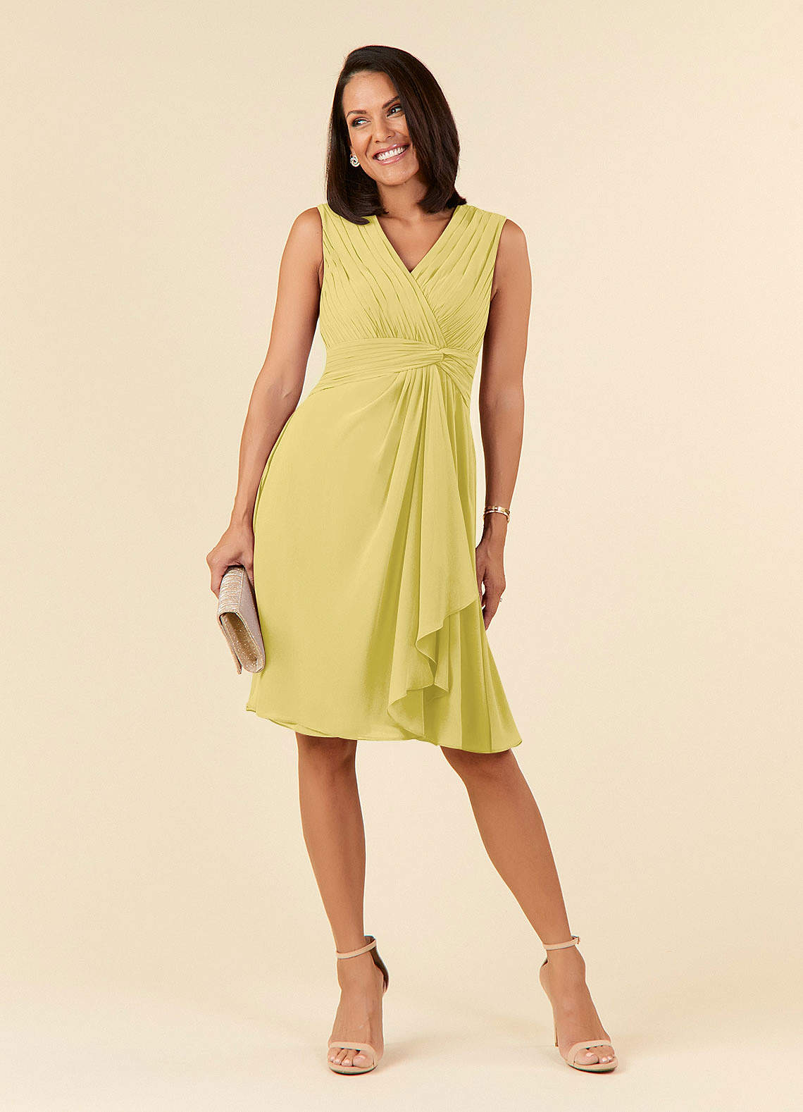 Robe Trapèze en Mousseline de soie Col V plissé Canari