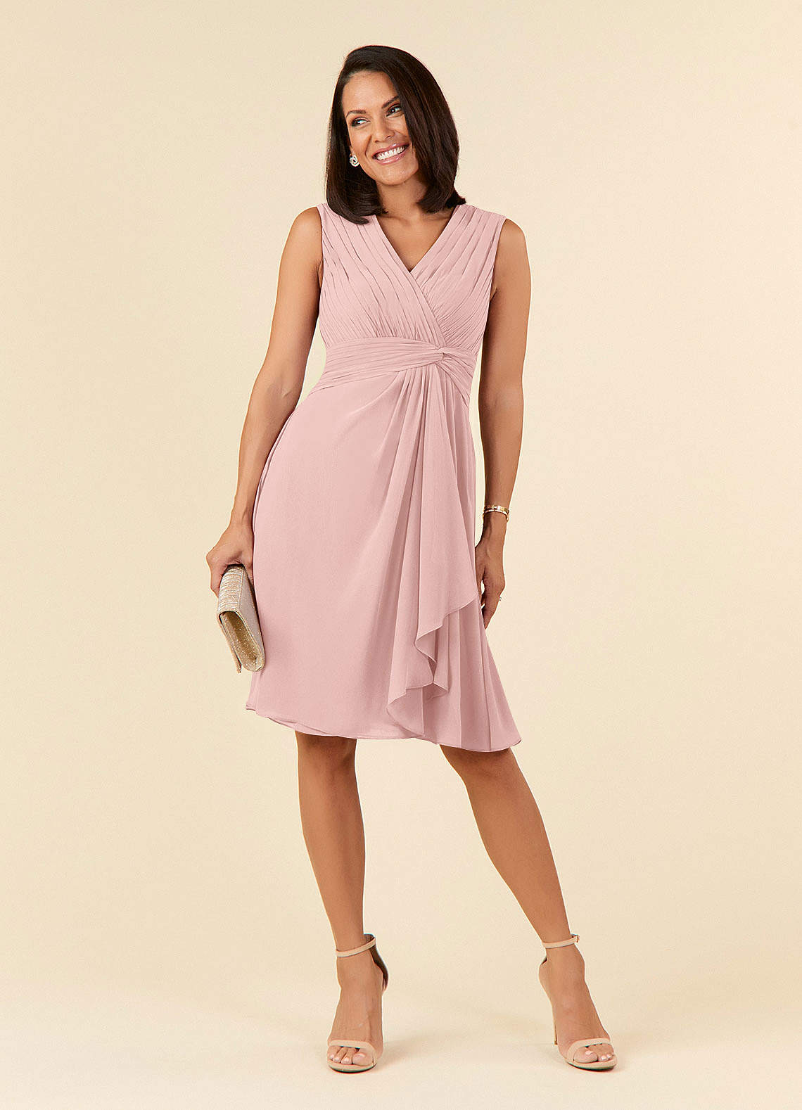 Robe Trapèze en Mousseline de soie Col V plissé Rose Poudré