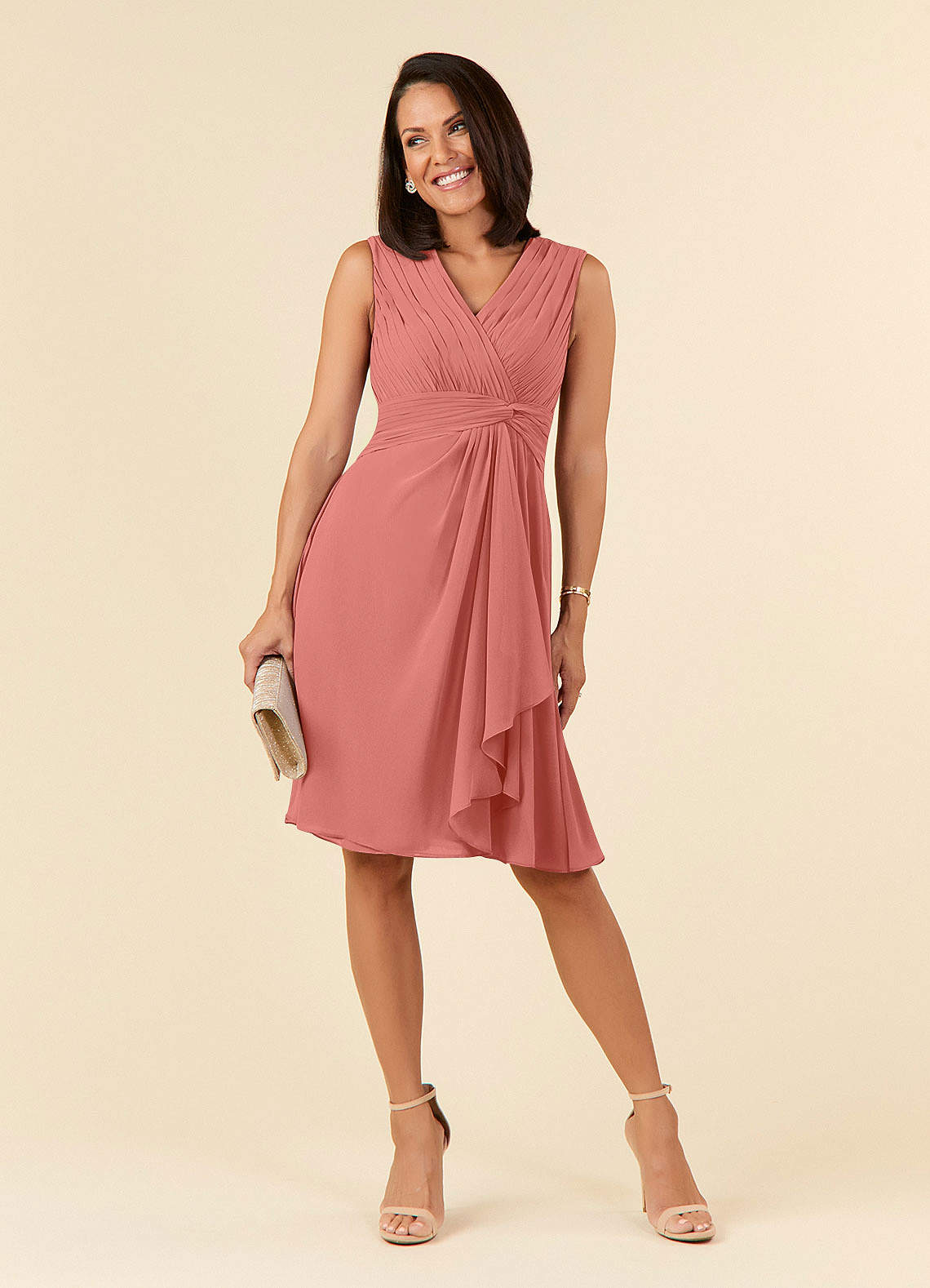 Robe Trapèze en Mousseline de soie Col V plissé Rose Saumon