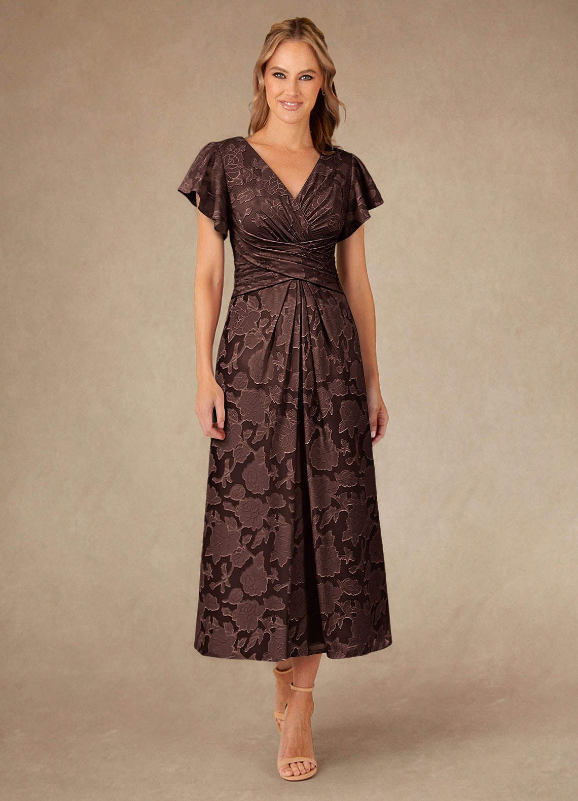 Robe Trapèze en Blumen-Burnout Plissée Ganache