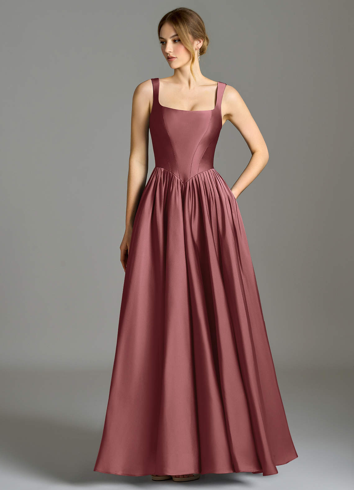 Robe Trapèze en Satin extensible Plissée Améthyste