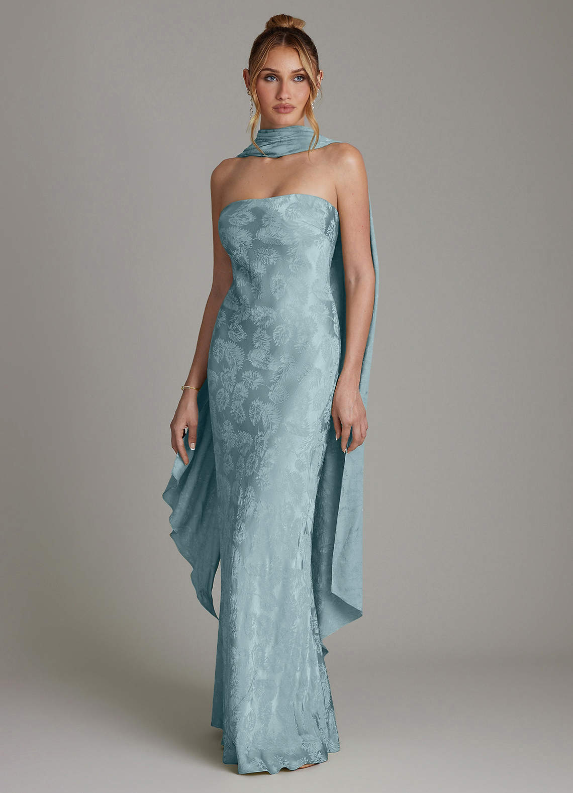 Robe Fourreau en Jacquard Sans bretelles Jacquard Bleu Clair