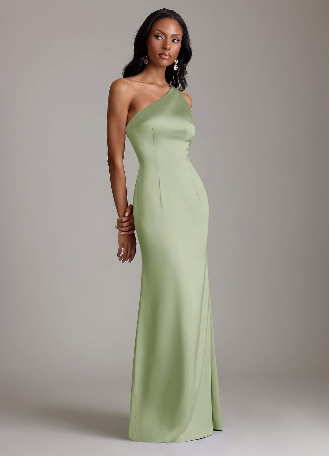 Robe Sirène en Satin extensible Une épaule Vert Sauge