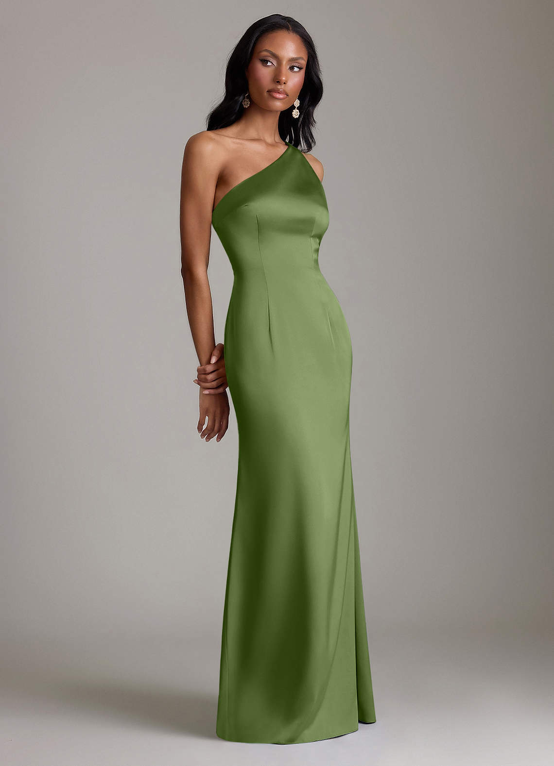 Robe Sirène en Satin extensible Une épaule Genévrier