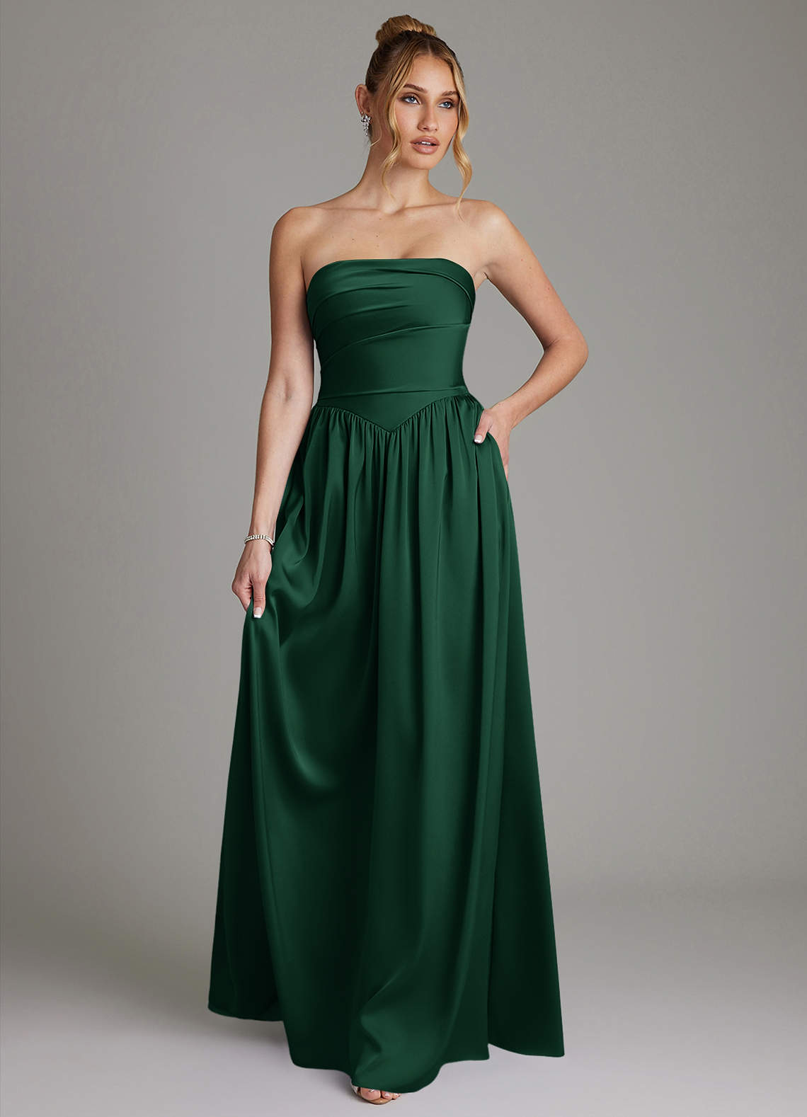Robe Trapèze en Satin extensible Sans bretelles Vert Foncé