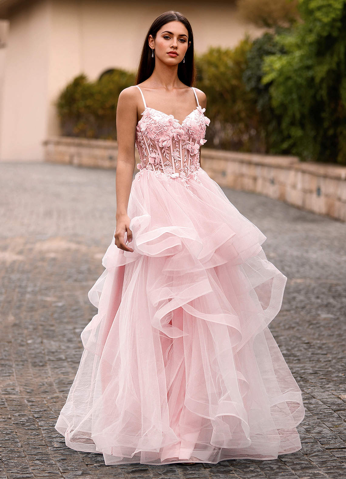 Dreama Rose Pâle Robe de bal corset en dentelle à volants