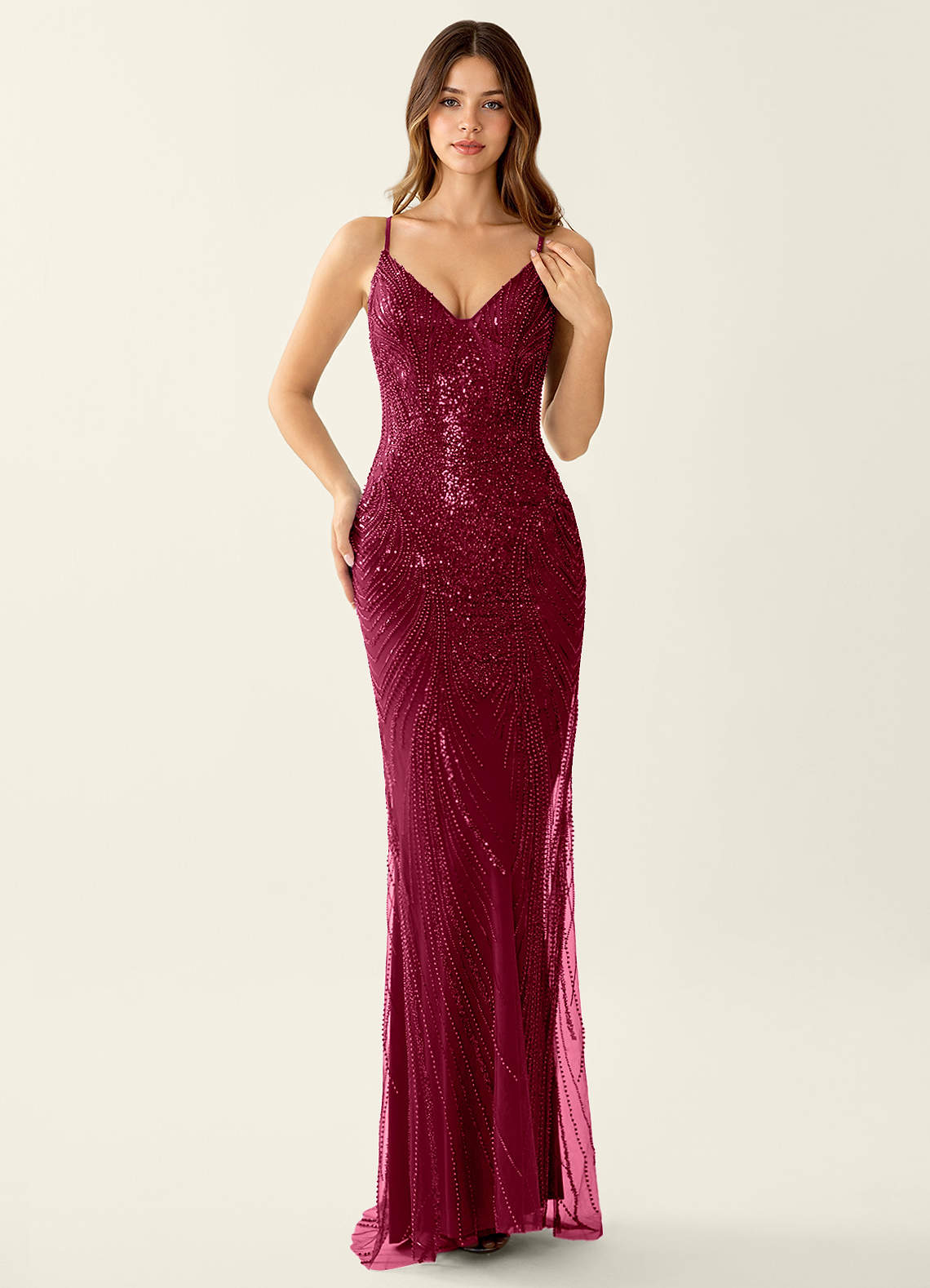 Magnolia Bourgogne Robe de bal sirène à sequins brodés