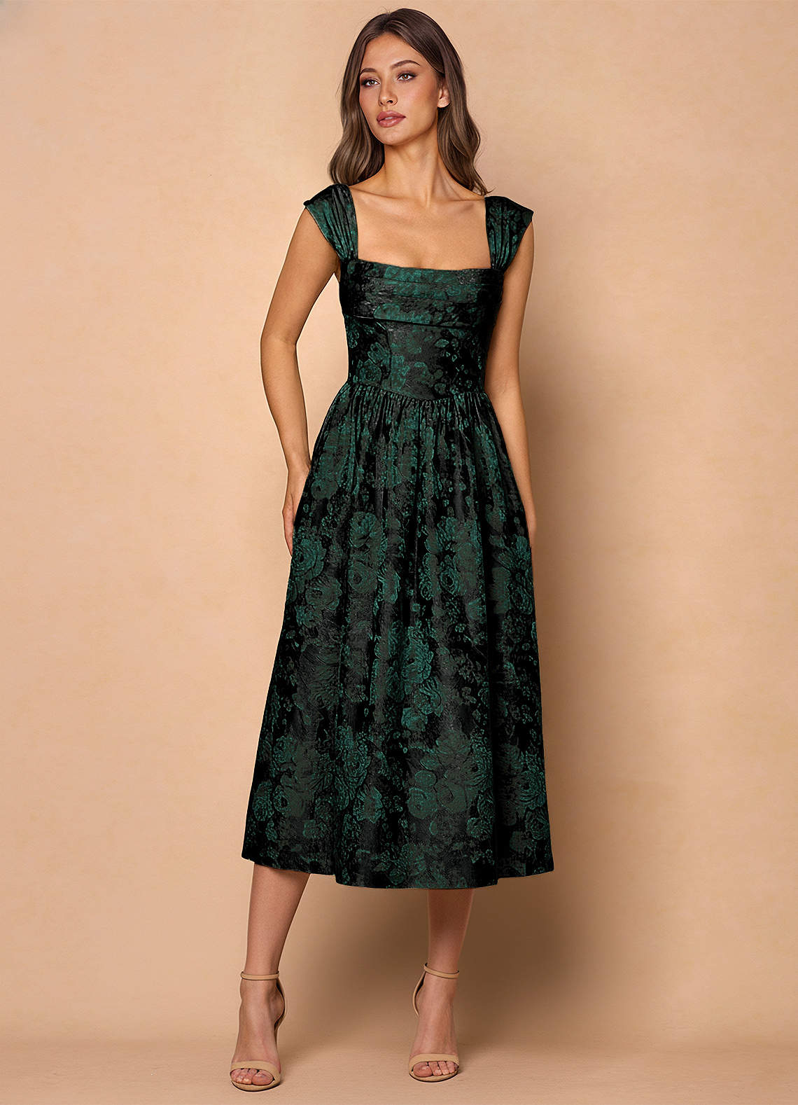 Robe Mi-Longue Noir émeraude Runa
