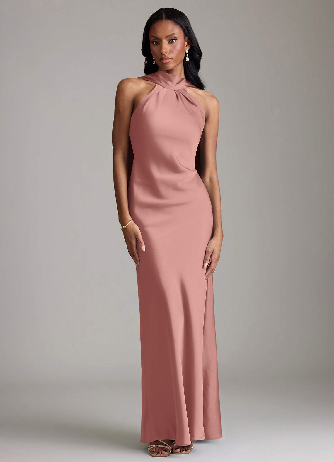 Robe Sirène en Satin extensible Plissée Bleu Ciel