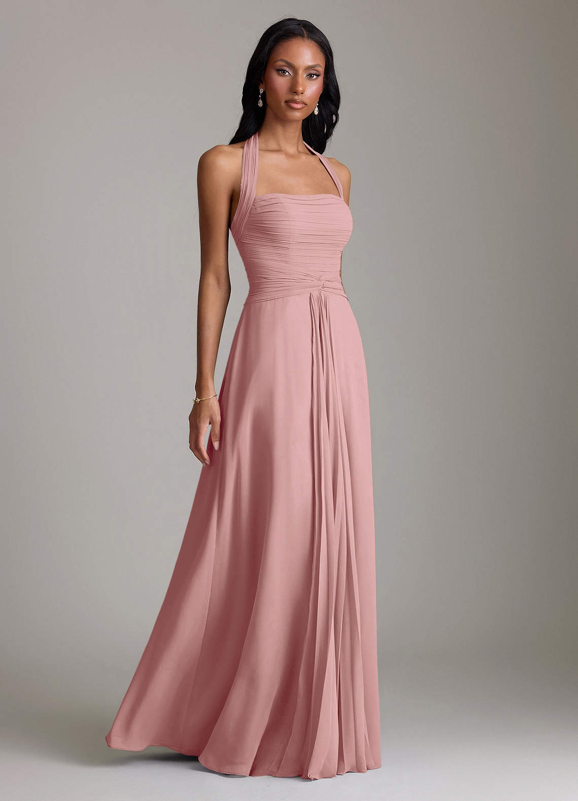 Robe Trapèze en Mousseline de soie Plissée Rose Poussiéreuse