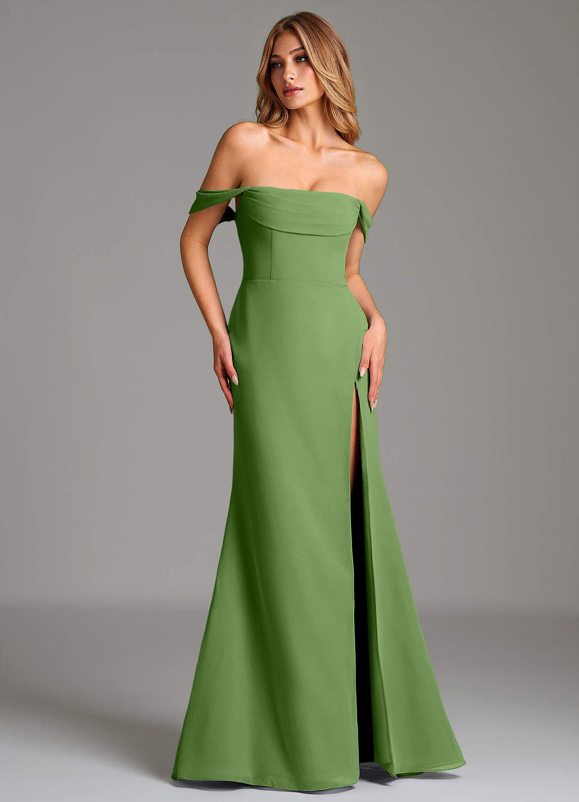Robe Fourreau Convertible en Mousseline de soie Épaule décolletée Basilic