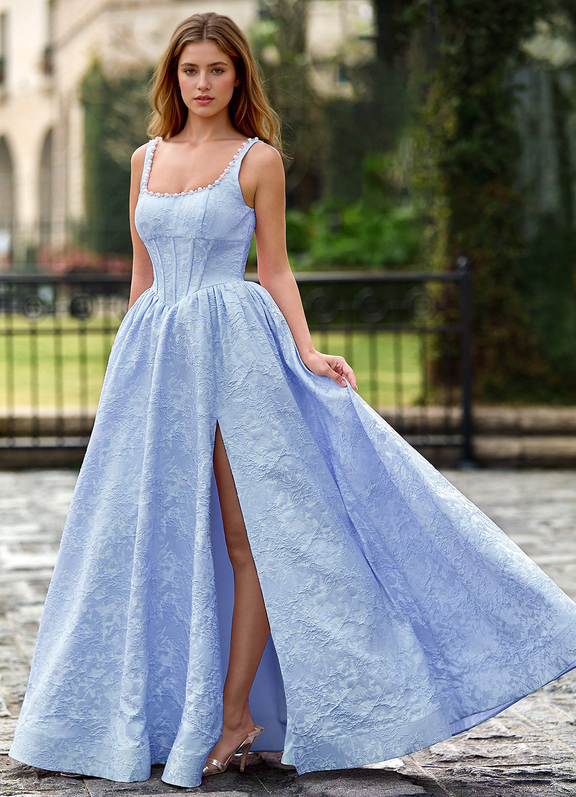 Thyme Bleu Ciel Robe de bal trapèze à fleurs 3D