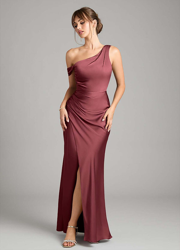 Cinnamon Mermaid One Shoulder Stretch Satin Dress