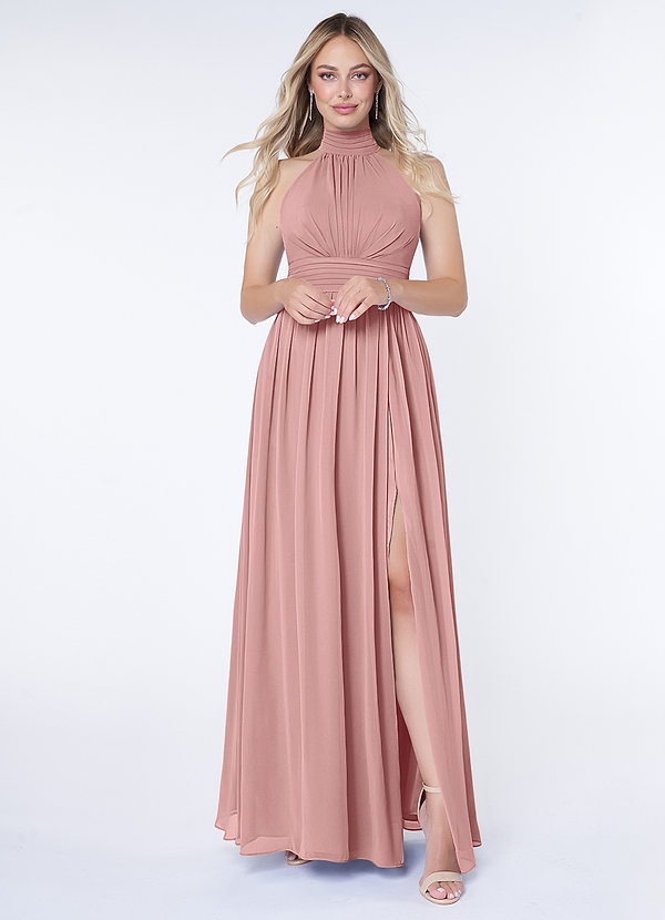 Dusty Rose A-Line A-Line Ruched Chiffon Dress