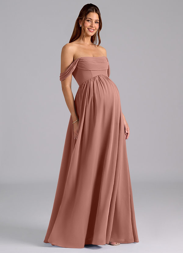 A-Line Off-The-Shouler Pleated Stretch Satin Floor-Length Dress