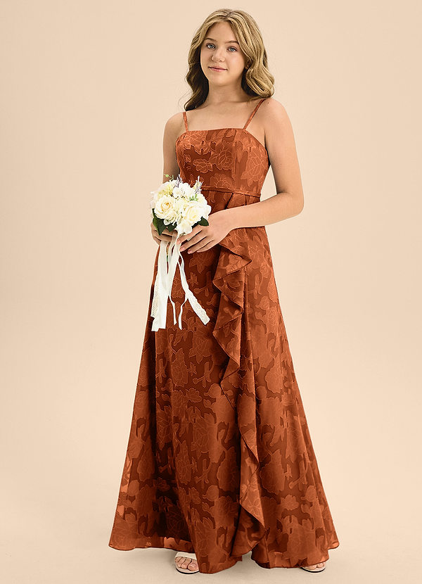 Burnt Orange A-Line with Belt Floral Burnout Dress