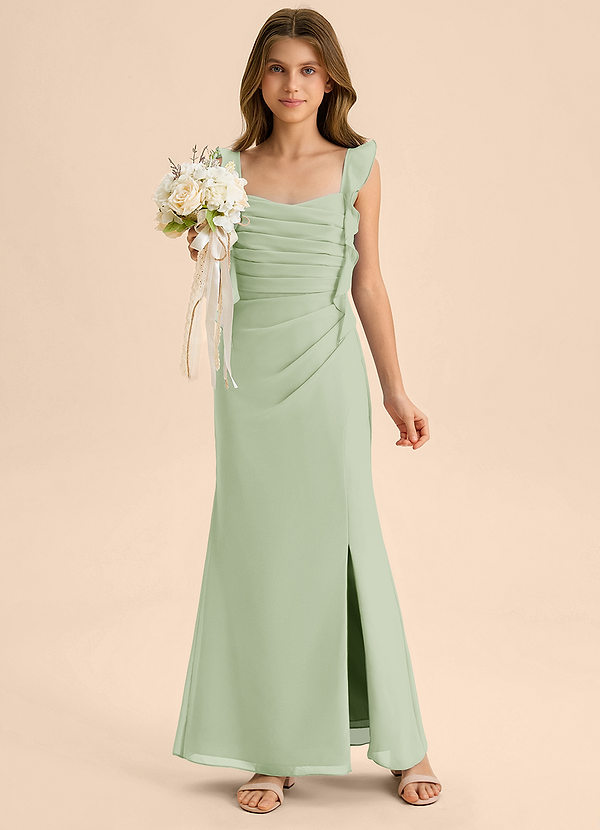 Dusty Sage A-Line Ruched Chiffon Dress