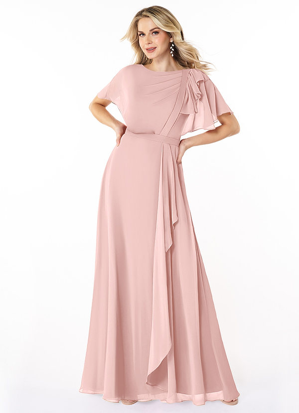 A-Line Scoop Pleated Chiffon Floor-Length Dress