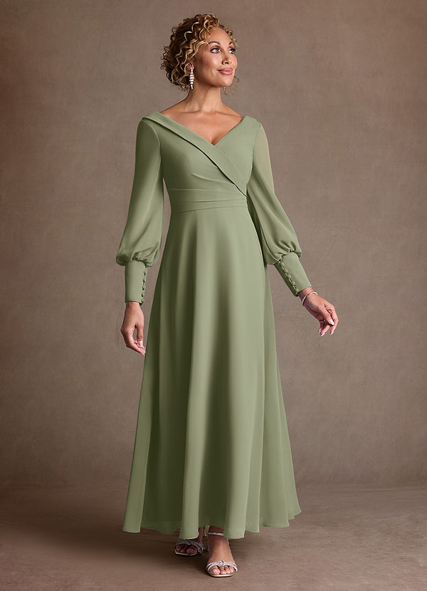 Dusty Sage A-Line Sequins Chiffon Dress