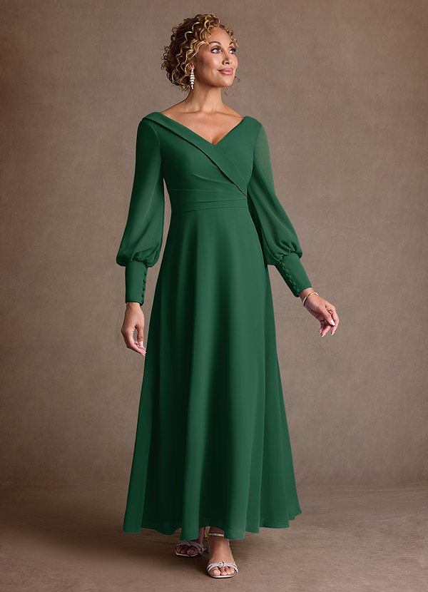 Mulberry A-Line Boatneck Pleated Chiffon Dress