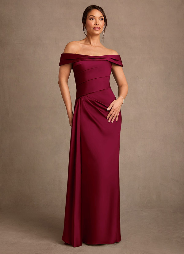 Burgundy Sheath Off the Shoulder Stretch Satin Dress