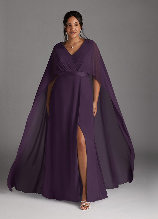 Plum A-Line V-Neck Pleated Chiffon Dress