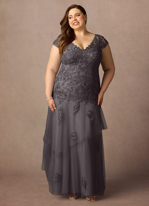 Dusty Blue A-Line Scoop Lace Tulle Dress