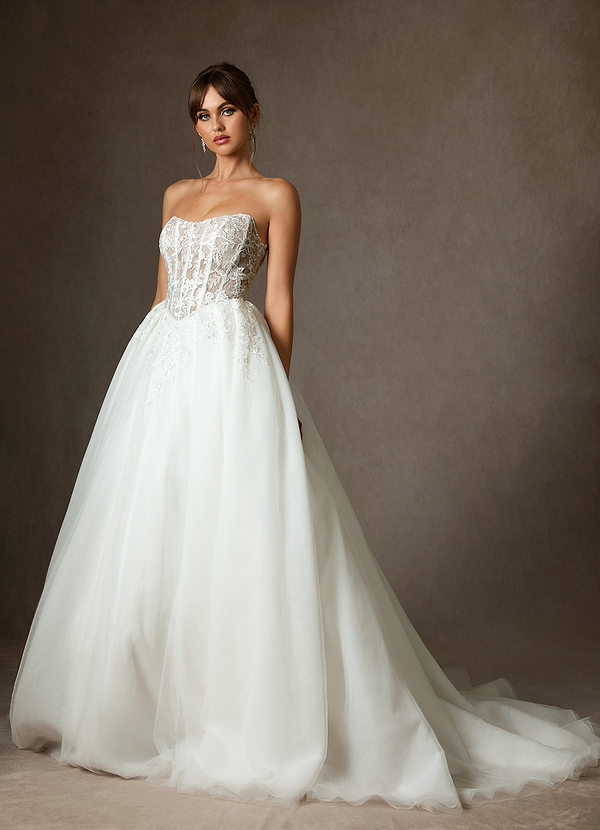 Diamond White Nude Ball-Gown Strapless Lace Dress