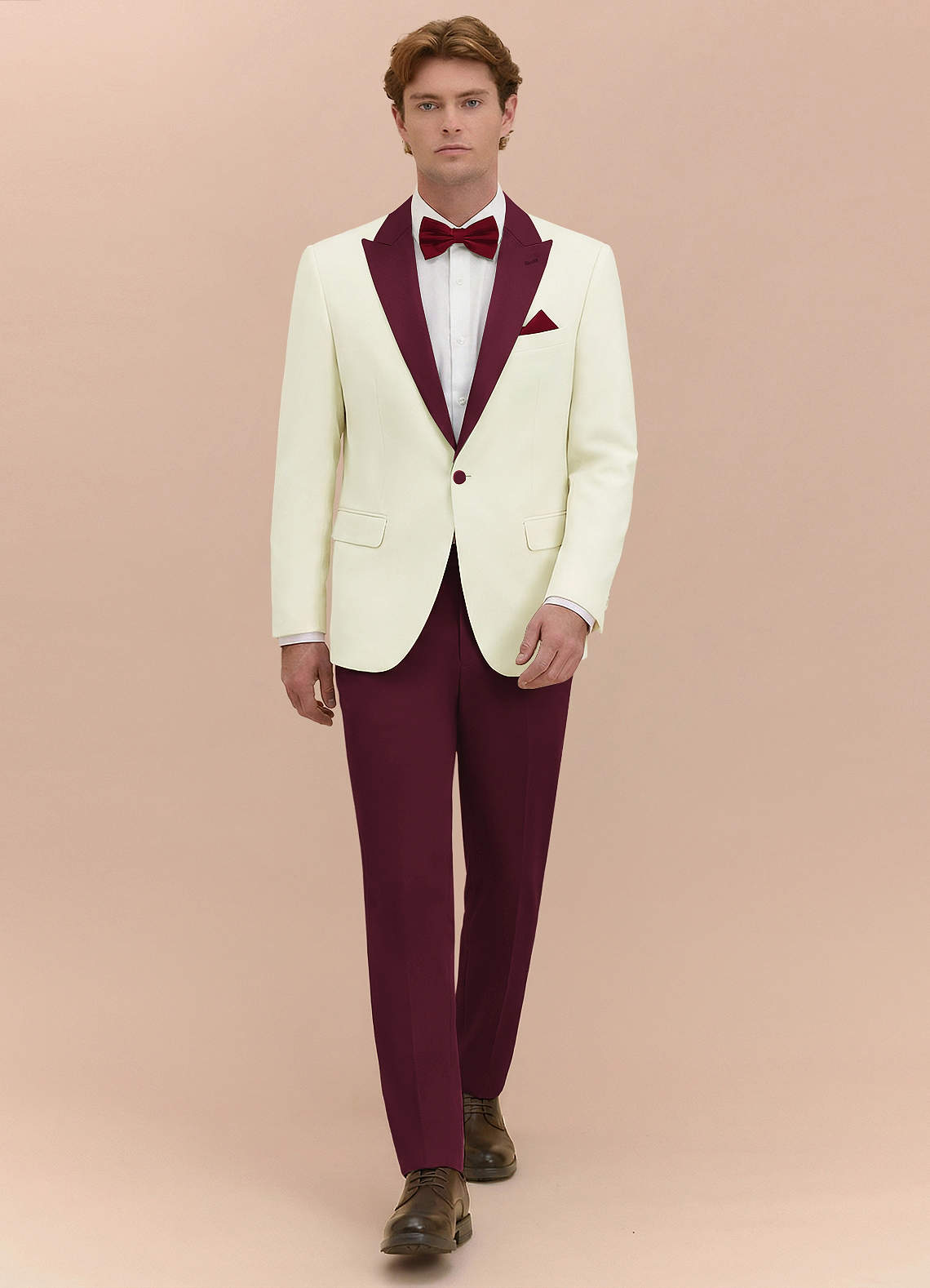 Adrian Burgundy Shawl Lapel Structured Stretch Tuxedo Suit