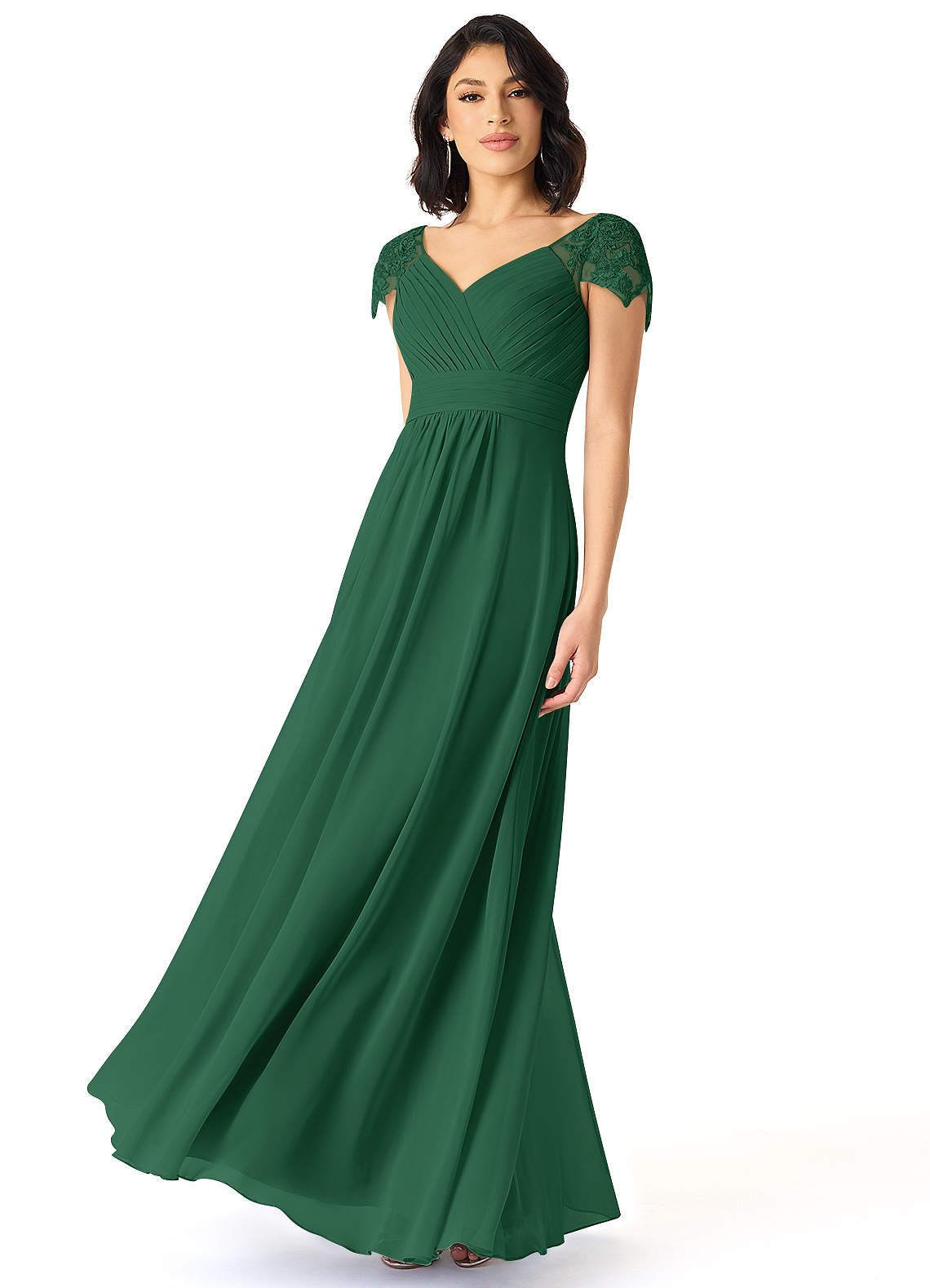 Dark Green A-Line Lace Chiffon Dress