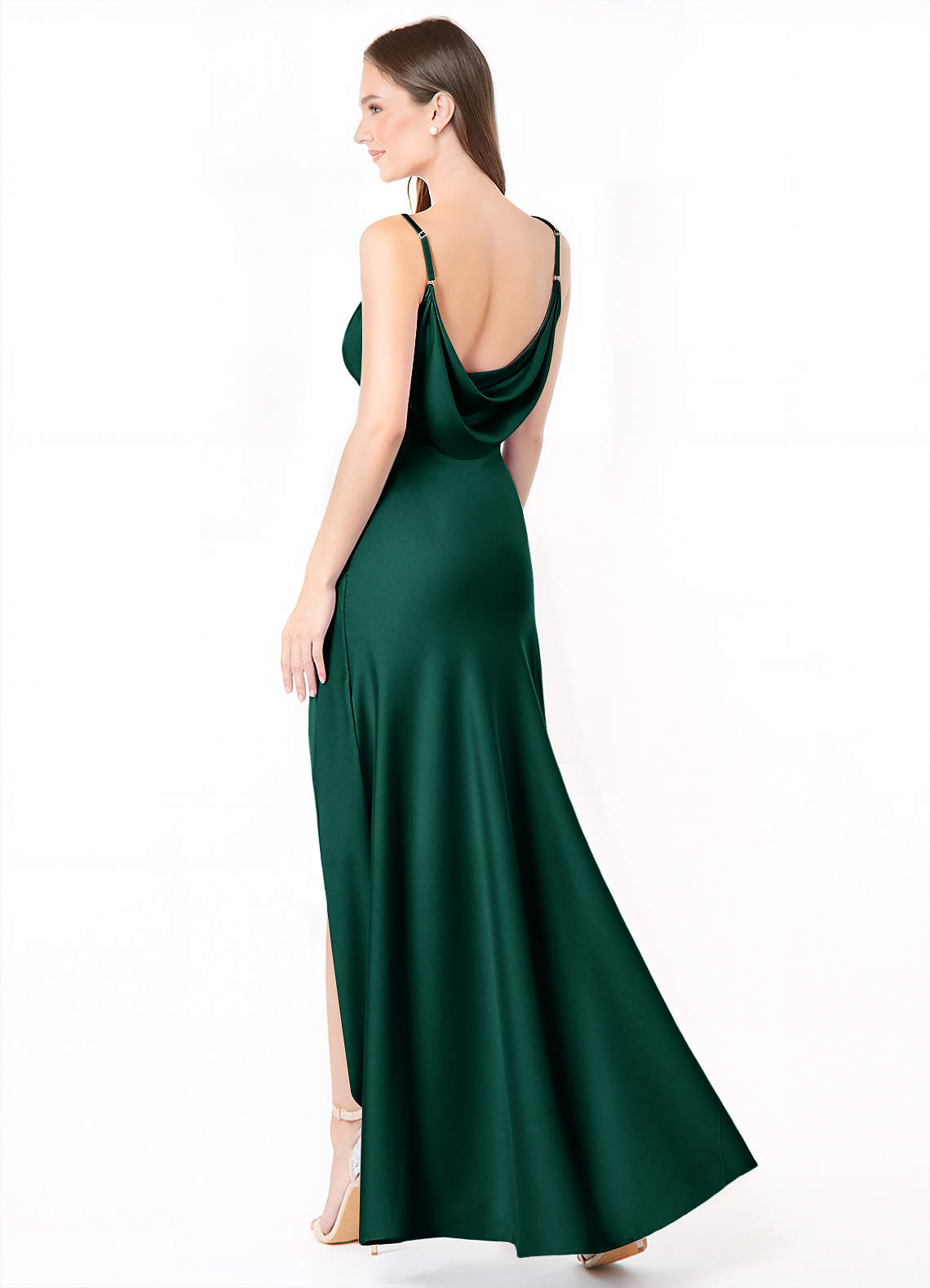 Emerald Mermaid Side Slit Stretch Satin Dress