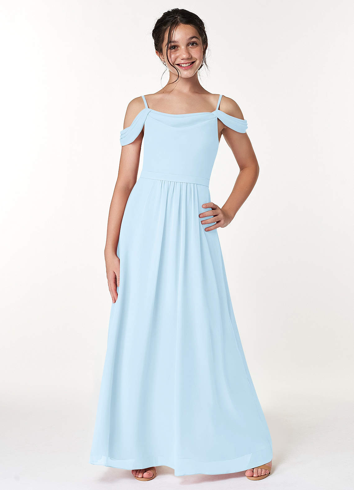 Sky Blue A-Line Off the Shoulder Chiffon Dress