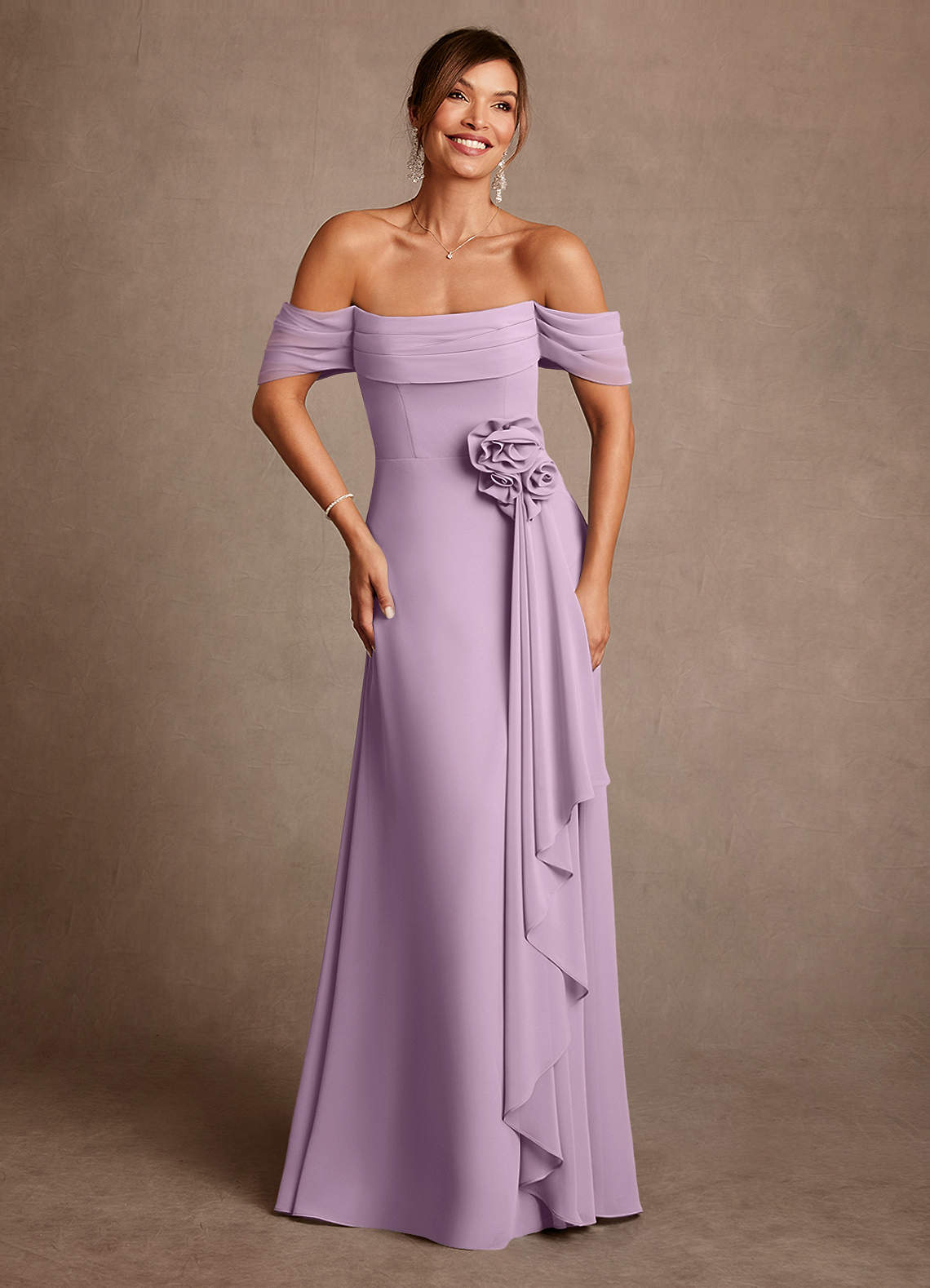 Wisteria A-Line Off the Shoulder Chiffon Dress