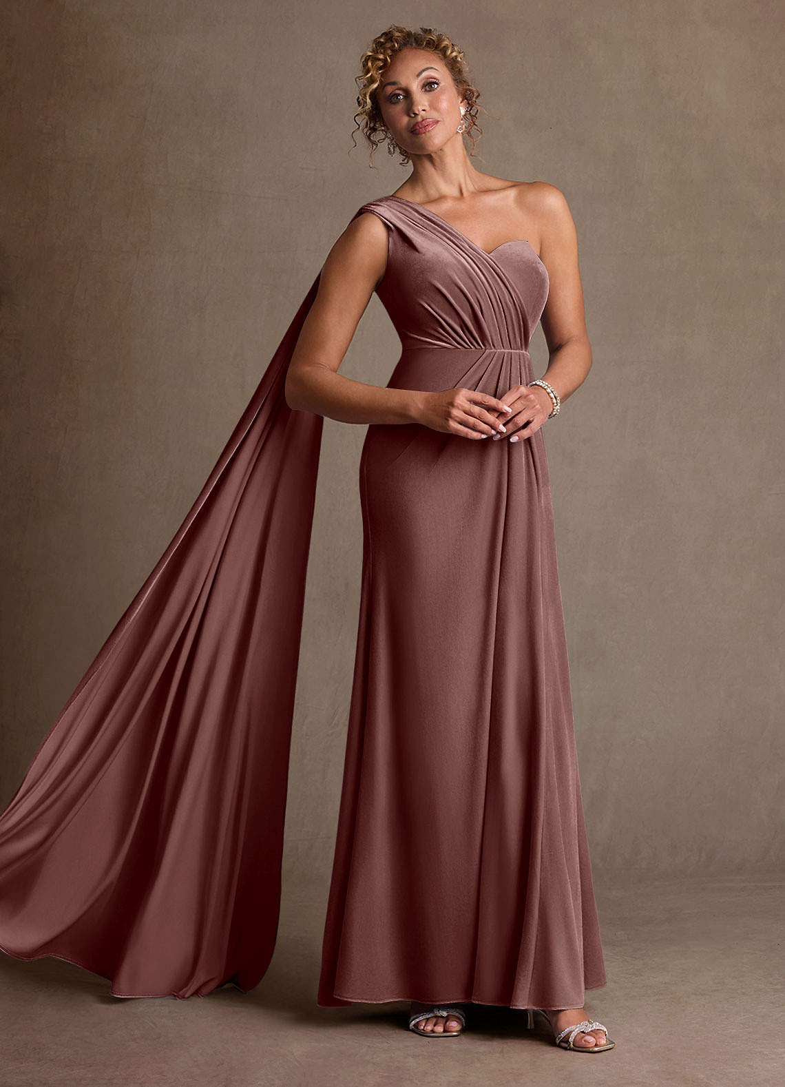 Espresso Sheath One Shoulder Velvet Dress