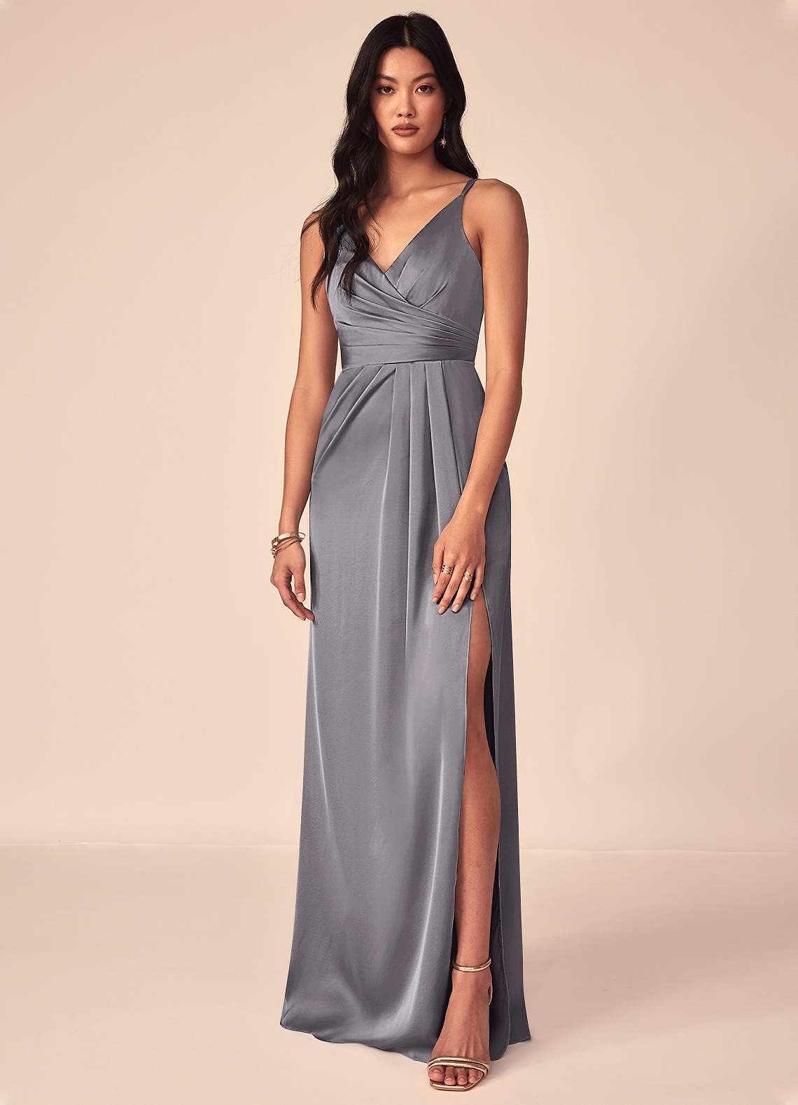 Shadow A-Line V-Neck Pleated Stretch Satin Dress