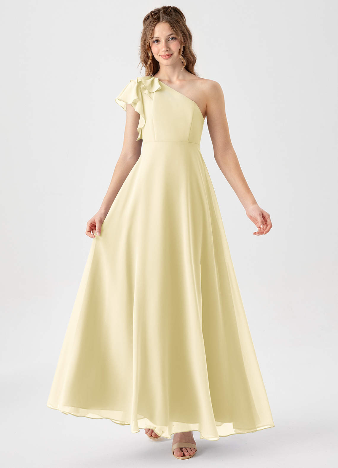 Lemon Sorbet A-Line Ruched Chiffon Dress