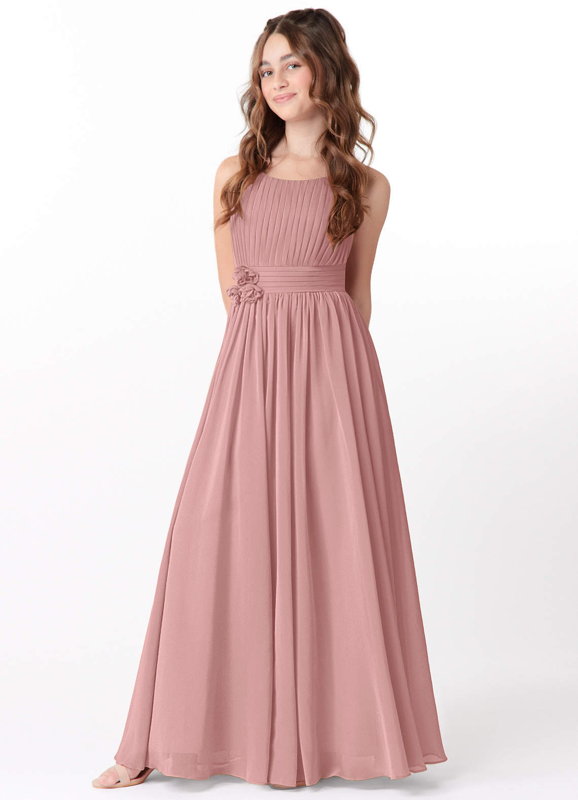 Dusty Rose A-Line Floral Chiffon Dress