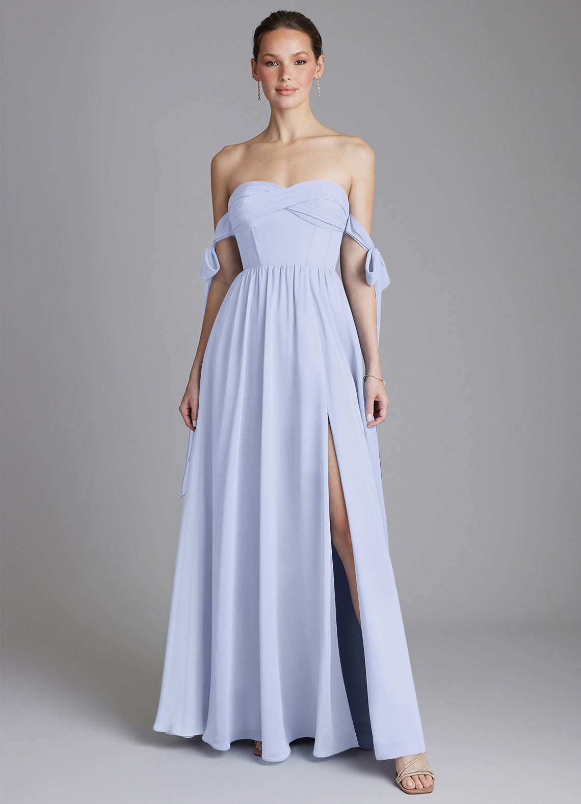 Lavender A-Line Off the Shoulder Chiffon Dress