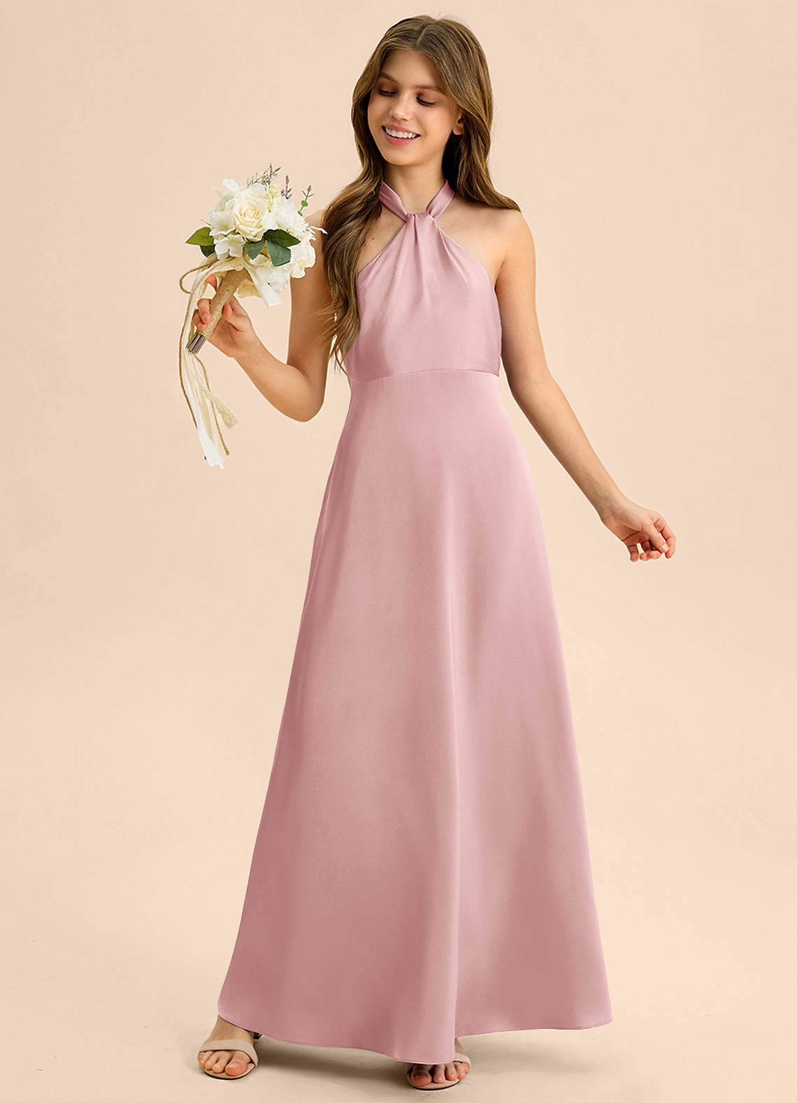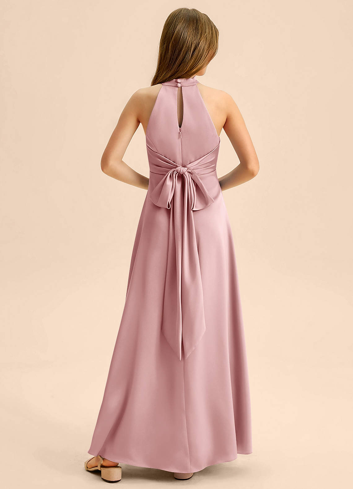 Dusty Rose A-Line Pleated Stretch Satin Dress