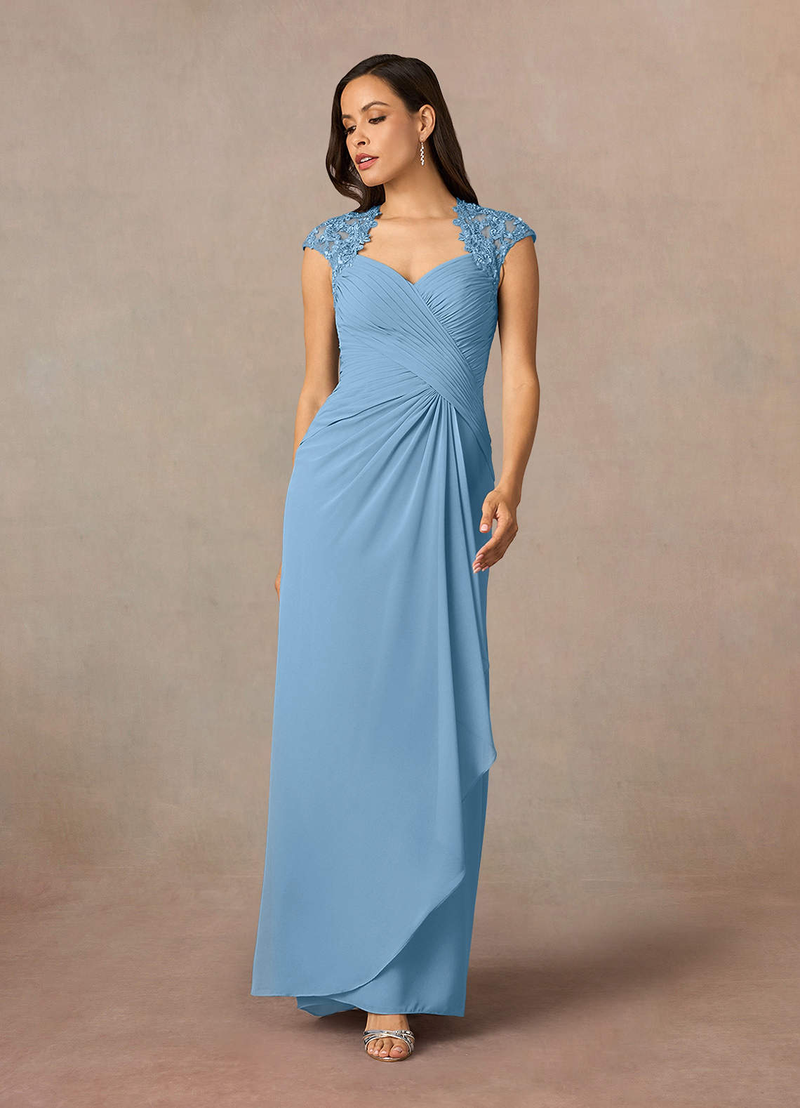 Steel Blue A-Line Queen Anne Sequins Chiffon Dress