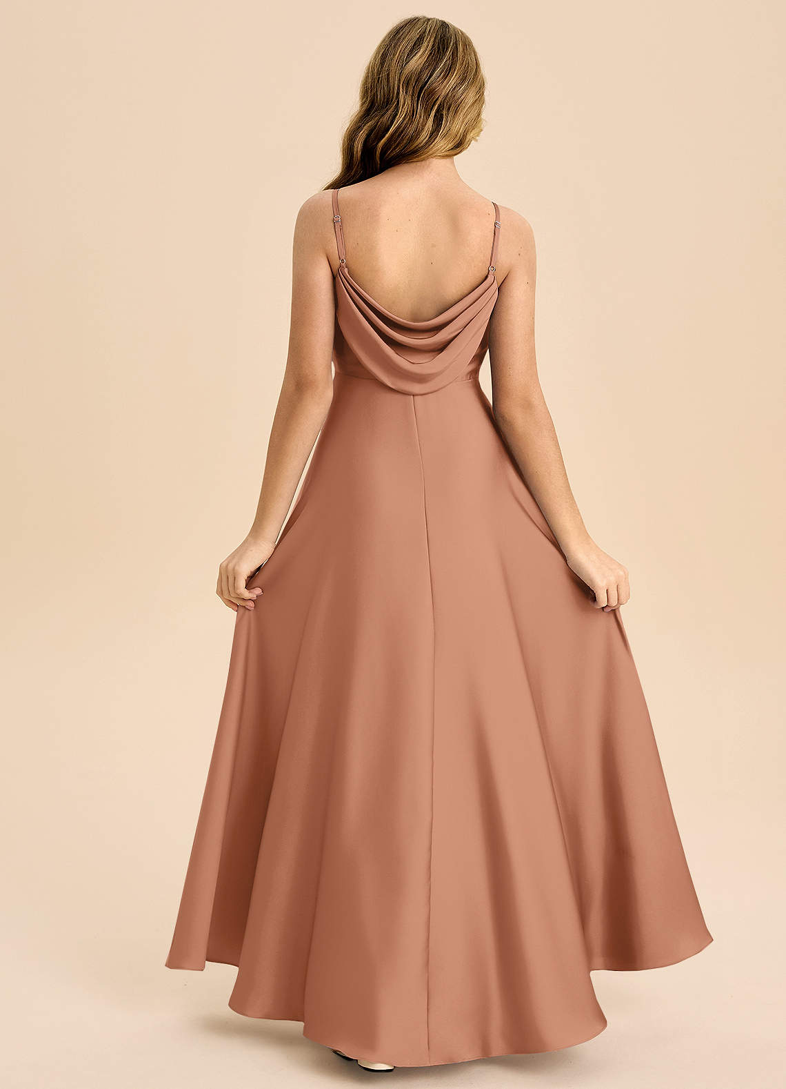 Bronzer A-Line Pleated Stretch Satin Dress