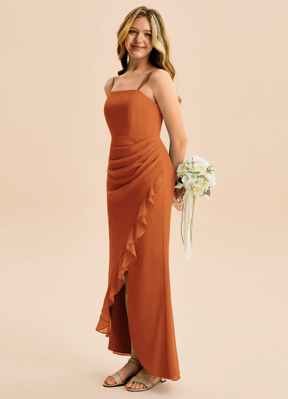 Cinnamon Sheath Pleated Chiffon Dress