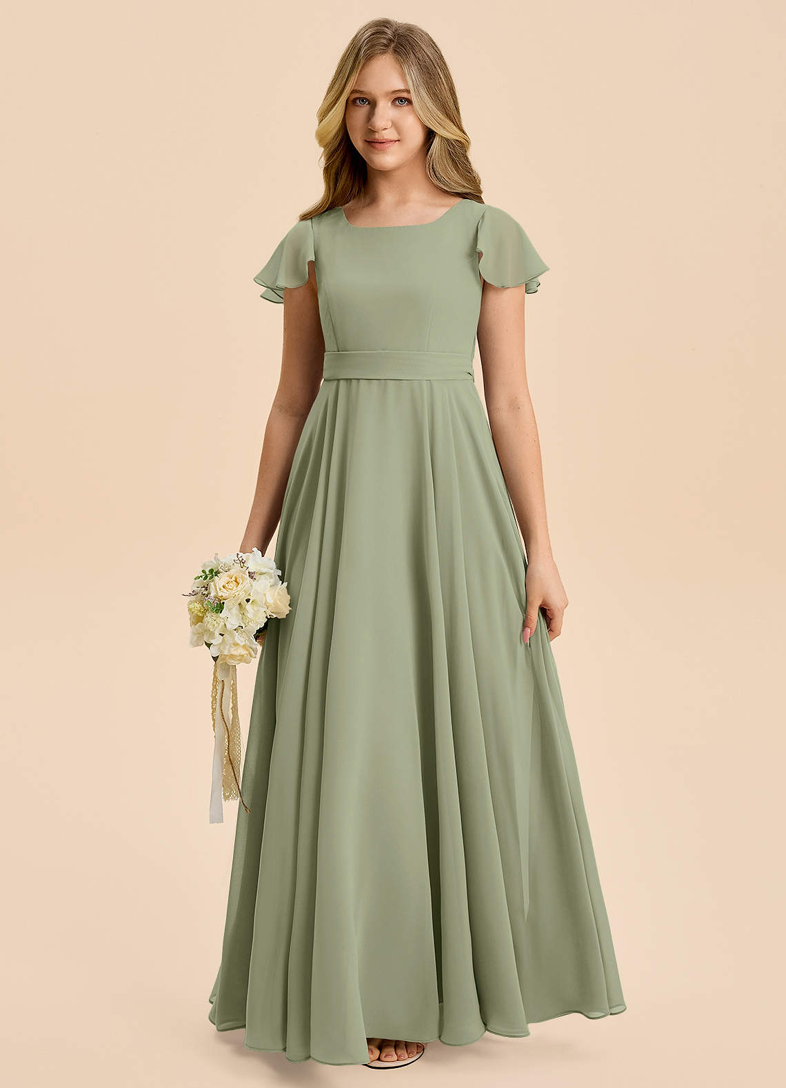 Pistachio A-Line Pleated Chiffon Dress